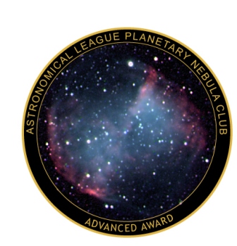 Southern observers may earn the basic award for observing 60 PNe and receive a certificate, or observe all 110 objects on the list to receive an advanced award which includes a certificate and a pin. Southern imagers may receive the imaging certificate and pin for imaging 90 of the objects on the list.