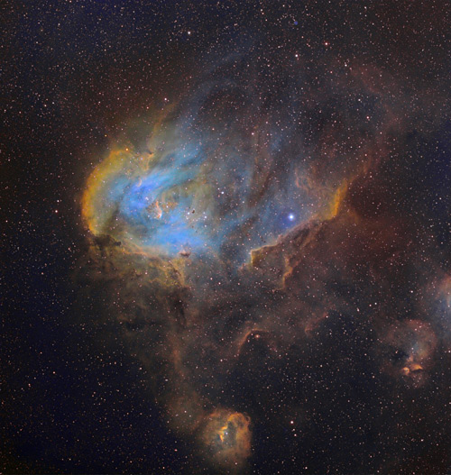 Do you think you're seeing a Hubble Image? Then think again. Just revealed at last weekend's NEAF gathering at Rockland College in Suffern, New York, this incredible image of IC 2944 was taken by Ken Crawford at Macedon Ranges Observatory and shows so much more than just pretty sky scenery. Take a deeper look and you'll discover an anomaly known as "Thackeray's Globules"... The photographic artistry of Ken Crawford takes us on a visual journey ever deeper into the busy star-forming region, IC 2944. While the view of this incredible emission nebula is some 6,000 light years away, Ken's work takes us directly in for close up views of Thackeray's Globules in ways that stagger the imagination. IC 2948 is sprawling cloud of gas and dust that is illuminated and heated by a loose cluster of massive stars known as IC 2944. These stars are much hotter and much more massive than our Sun and their strong stellar winds carve out unique shapes in the noble hydrogen gases. These busy are home to curious dark masses which we really don't know a whole lot about - except their association. Dark globules like these have been known since Dutch-American astronomer Bart Jan Bok first began documenting them in 1947 and astronomer A.D. Thackeray first spied the globules in IC 2944 in 1950. The largest of the globules in IC 2944 could possibly be two separate clouds that appear to partially overlap along our line of sight. Each cloud is nearly 1.4 light-years along its longest dimension and a combination of both clouds contain enough material to equal over 15 solar masses. When you take a closer look, you'll see the globules appear almost shattered - as if strong forces were pulling them apart. In the case of IC 2944, seeing is believing because when radio astronomers observed the faint hiss of molecules within the globules, they realized Thackeray's million year old discovery is in constant, aggressive motion, moving along in a supersonic dance. !