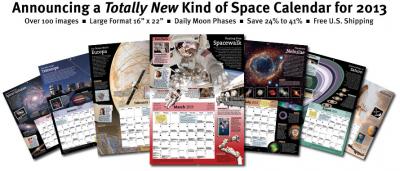 Astronomical League members (clubs and individuals) are eligible to purchase the new large-format Year In Space Wall Calendar at discounts ranging from 24% to 41%, with free U.S. Shipping. The calendar retails for $16.95, but AL members and clubs can purchase a single copy for $12.95; two or more copies to the same address are $11.95 each; 10 or more are $10.95 each; 36 or more are $9.95 each. The calendar is 16" wide and 22" tall, and features over 100 images, daily Moon phases, night sky events, space history, and much more. It's published in cooperation with The Planetary Society. See more at http://www.YearInSpace.com/wall-calendar