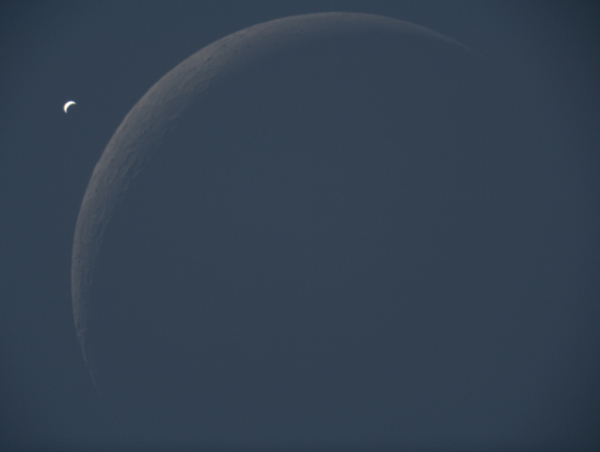 Venus and the moon from early this morning at 6:13 am MDT about 7 minutes before occultation.
